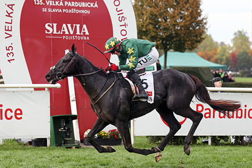12.10.2025, Pardubice: Stumptown with Keith Donoghue up wins the 135. Velka Pard...