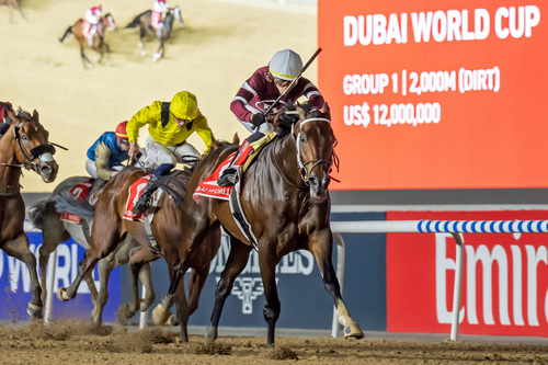 28.03.2026, Dubai, UAE - Magnitude mit Jose Ortiz gewinnt den Dubai World Cup 20...