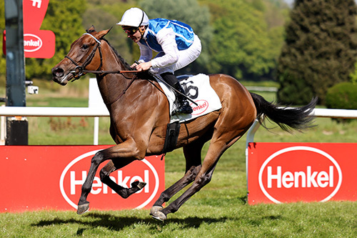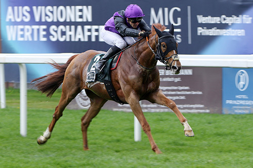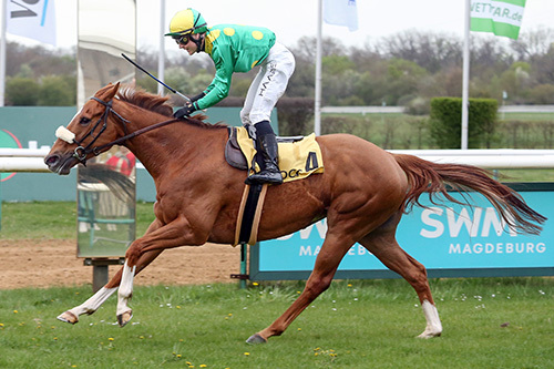 12.04.2026, Düsseldorf: New Emerald mit Sibylle Vogt gewinnt die Kalkmann-Früh...